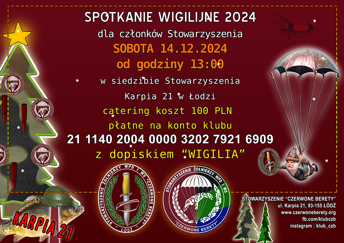 Serdecznie zapraszamy klubowiczów na spotkanie wigilijne, szczegóły na stronie wydarzenia: