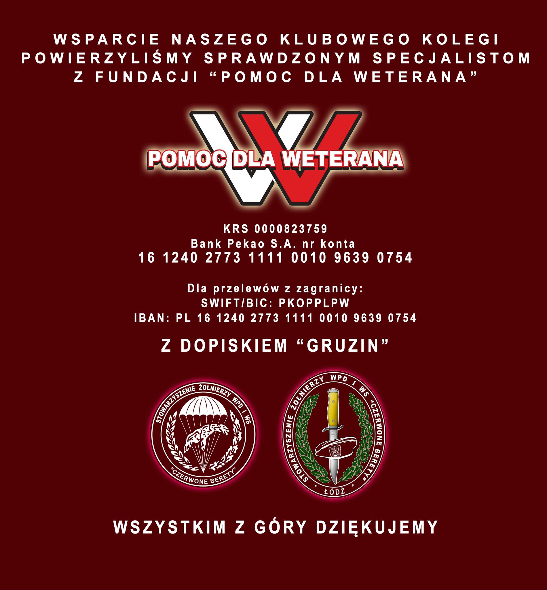 Sami nie realizujemy tej akcji pomocowej – powierzyliśmy sprawę znanej Wam wszystkim Pomoc dla Weterana, która profesjonalnie załatwi wszystkie sprawy.